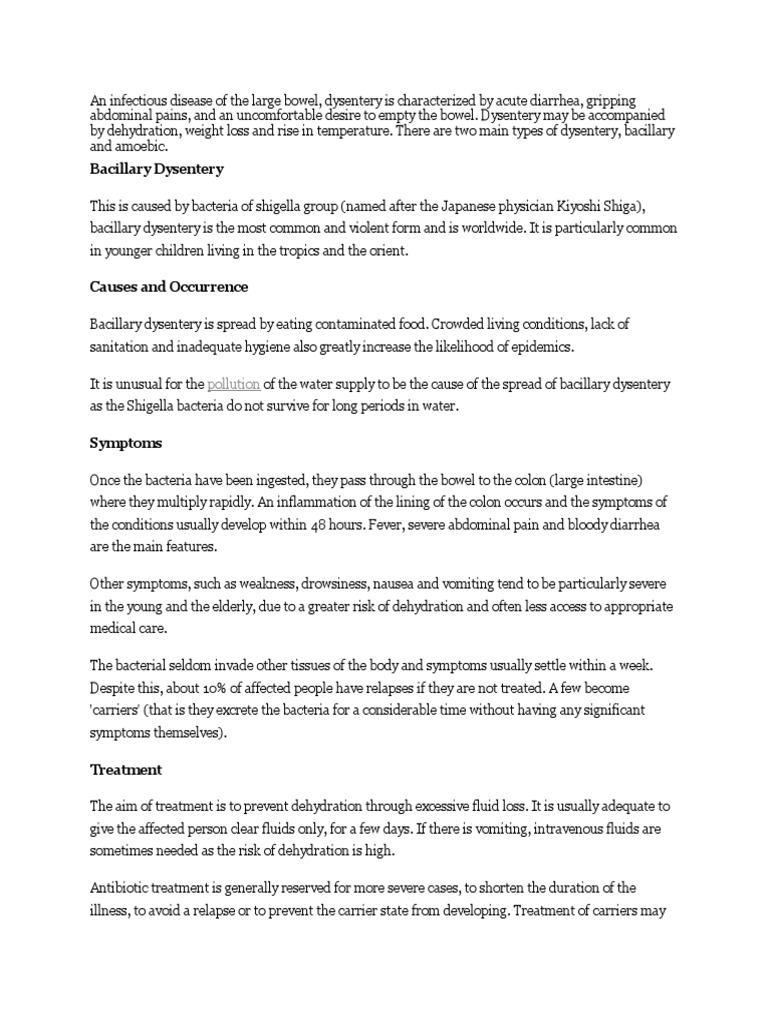 Dysentery Treatment Symptoms And Causes