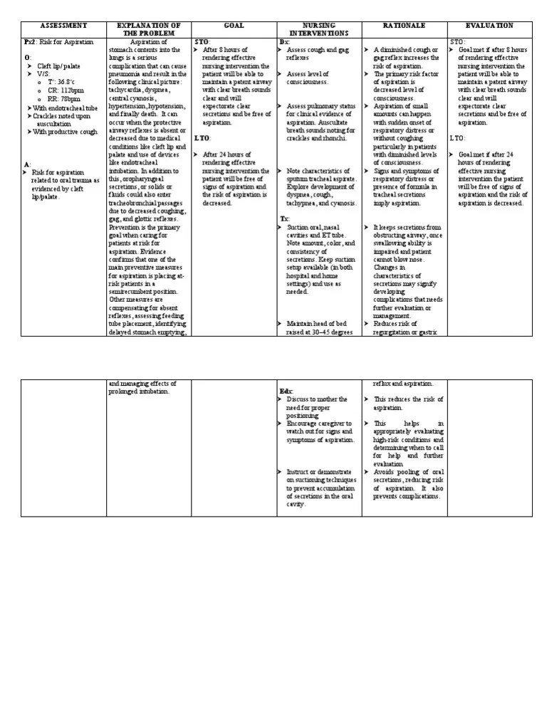 Nursing Care Plan For Risk For Aspiration Ncp Docshare Tips