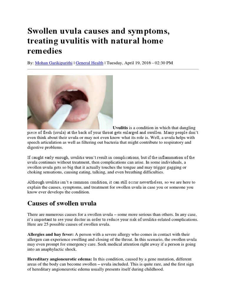 Swollen Uvula Causes Symptoms And Remedies