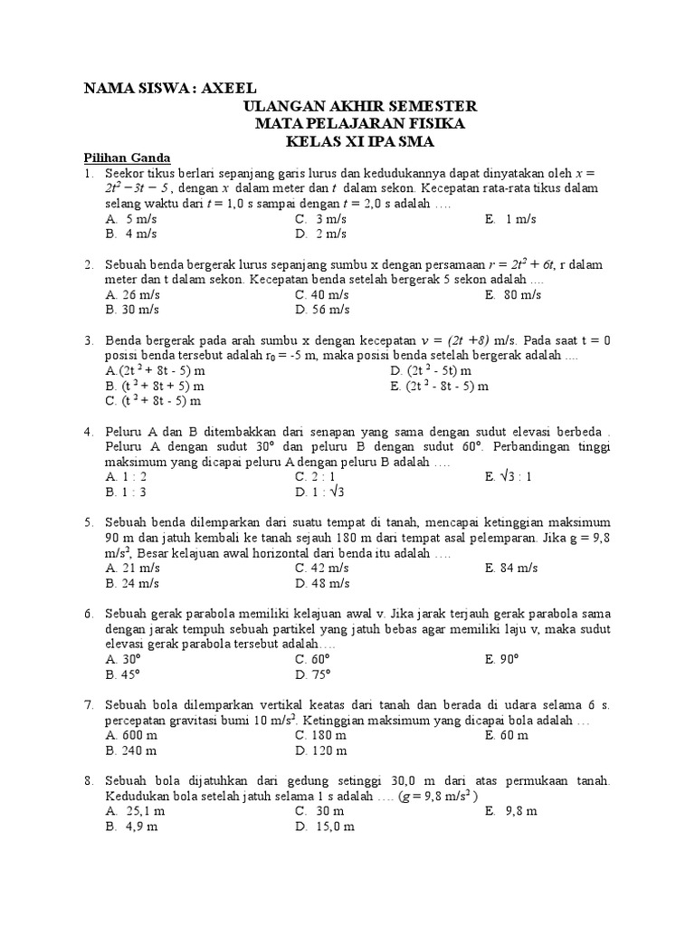 Uas Axeelulangan Akhir Semester Mata Pelajaran Fisika Kelas Xi Ipa Sma