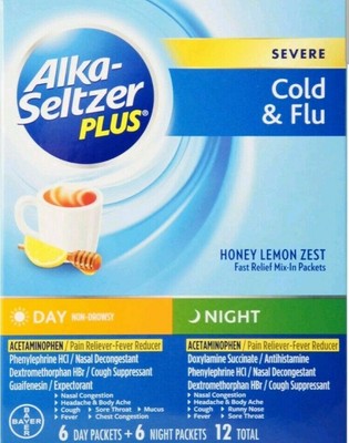 New Alka Seltzer Plus Severe Cold Flu Day Night Packs Powder Honey
