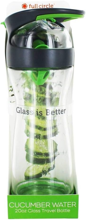 Full Circle Cucumber Water Glass Water Bottle Green 20 Fl Oz